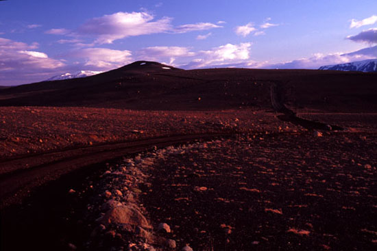 キョルールルート Kjolur route (F35) ラングヨークトル氷河とホフスヨークトル氷河に挟まれたキョルールを経由して南北をつなぐヴァイキング時代からの重要な内陸路です。 広大な不毛の大地に200Kmほど山岳道路が続きます。